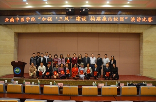 近日,云南中醫學院舉辦了“加強‘三風’建設 構建廉潔校園”的演講總決賽,旨在進一步鞏固學校創建“省級廉政文化示范點”的成果,加強校風、教風、學風建設,培育師生樹立正確的廉潔價值理念。省紀委第四紀檢監察室楊庚西副主任、解應邦同志、省委高校紀工委周既松同志蒞臨指導。學院在家的領導黨委楊建軍書記、李瑪琳校長、王翠崗副書記、紀委楊中梁書記、李世輝副校長出席比賽,學院紀委委員、有關部門負責人及教師代表擔任比賽評委。在總決賽之前,學院各黨總支、二級學院組織了10余場初賽,全校85%以上的師生參加了本次活動。經過緊張激勵的角逐和評委的公正評判,教師組共產生一等獎3名,二等獎5名,三等獎7名;學生組共產生一等獎3名,二等獎5名,三等獎9名。
