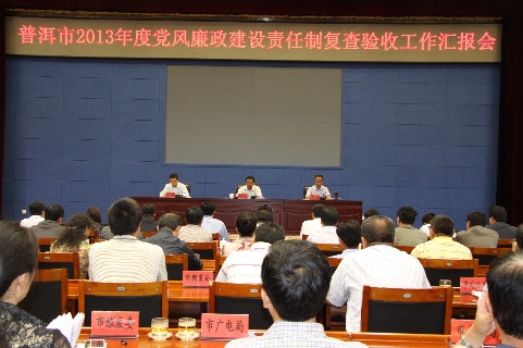 普洱市委書記衛星代表市委匯報了我市2013年度黨風廉政建設責任制整改落實情況。并要求全市廣大黨員干部要結合群眾路線教育實踐活動,認真落實玉清同志的講話精神,以更加堅定的信心、更加堅決的態度、更加有力的措施,推動普洱市懲防體系建設和黨風廉政建設責任制工作再上新臺階。
