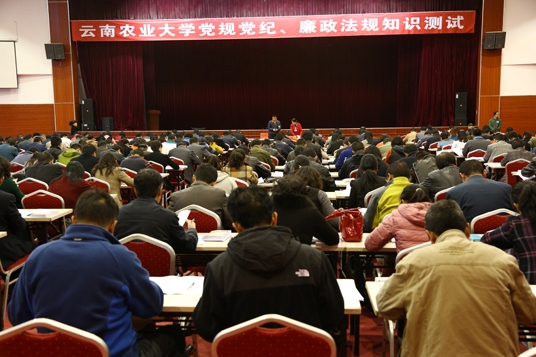 為深入貫徹落實黨的十八屆四中全會精神,增強黨員干部學法、知法、懂法、守法、用法,云南農(nóng)業(yè)大學紀委組織學校280余名黨員干部進行黨規(guī)黨紀、廉政法規(guī)知識測試。為方便黨員干部學習,校紀委組織匯編了《黨的十八大以來中央省和學校黨風廉政建設(shè)相關(guān)文件選編》和《領(lǐng)導干部黨風廉政建設(shè)知識問答》兩本書,內(nèi)容包括黨規(guī)黨紀、廉政法規(guī)以及十八屆四中全會相關(guān)精神,發(fā)到各學院、各部門,黨員干部人手一冊。本次測試就是以《中國共產(chǎn)黨章程》以及學校編印的這兩本書為內(nèi)容范圍,測試總分為100分,80分以上為合格, 測試結(jié)果記入干部檔案,作為提拔使用的必備條件之一。據(jù)悉,云南農(nóng)業(yè)大學是云南省高校中首家舉行黨紀法規(guī)測試的單位。