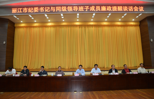 為切實履行好《中國共產黨章程》賦予紀委對同級黨政領導班子及其成員進行監督的職責,日前,市委下發《麗江市紀委書記與同級領導班子成員廉政提醒談話實施辦法》, 9月 4日,市紀委書記與市四套班子成員進行了廉政提醒談話。市紀委負責人介紹,從地市級層面,紀委書記與同級領導班子成員進行廉政提醒談話,麗江為全省首例。