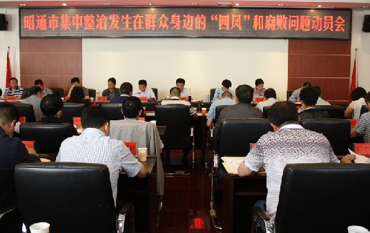 昭通市委常委、市紀委書記陸維智同志出席會議并作動員講話,市紀委副書記、市監察局局長、市預防腐敗局局長田榮屏同志主持會議,市紀委副書記夏瓊同志部署集中查處百日專項行動,市紀委副書記賀飛同志宣讀成立集中整治發生群眾身邊的“四風”和腐敗問題的通知。