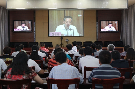 9月10日早上,施甸縣紀委在該縣政府四樓視頻會議室收看學習省委常委、省紀委書記張碩輔在云南省委舉辦“三嚴三實”和“忠誠干凈擔當”專題教育黨課會上的講話精神。施甸縣紀委在家的縣級領導、縣直各單位主要負責同志、縣紀委監察局副科級及其以上領導干部共計60余人參加收看學習。