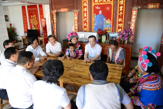 在楚雄市紫溪彝村,張碩輔認真聽取了楚雄州、市兩級及紫溪彝村相關負責人關于黨風廉政建設、扶貧和黨建工作的匯報。他指出,要抓好扶貧工作這項政治任務,加快脫貧致富的步伐,解決好以交通為主的水、電、路、環(huán)境等基礎設施建設,著力加快產(chǎn)業(yè)扶貧,創(chuàng)新產(chǎn)業(yè)扶貧機制,做到貧困人口跟著致富能人走、扶貧資金跟著項目走、項目資金跟著產(chǎn)業(yè)走;要切實加強基層黨組織建設,始終堅持黨組織的核心地位不動搖,加強對群眾的教育引導,發(fā)揮基層黨組織的引領功能,不斷提高服務群眾,服務發(fā)展的水平,要提高基層黨組織的凝聚力,強化基層黨組織的能力建設、發(fā)展壯大村級集體經(jīng)濟。