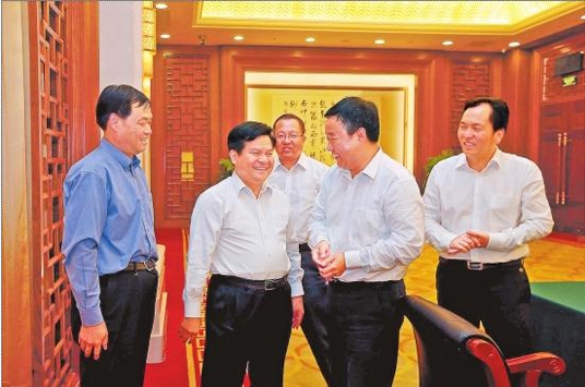 10日,李紀恒在昆明與我省4位全國優秀縣委書記暢談。雷桐蘇 攝