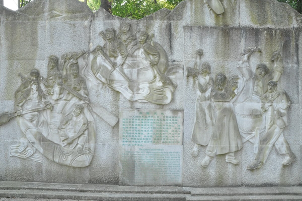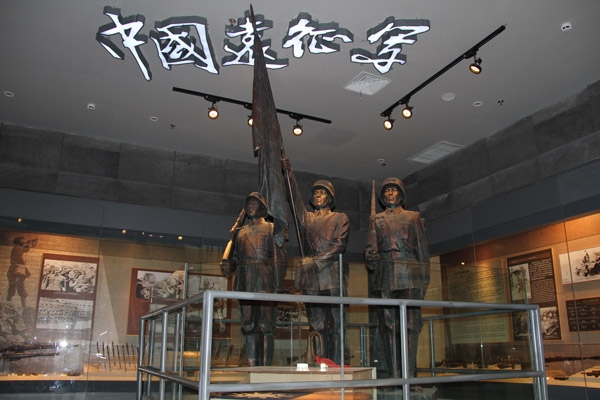 地面的時(shí)間節(jié)點(diǎn)分別代表了修筑滇緬公路、滇西淪陷、滇西遠(yuǎn)征軍的反攻、中國抗日戰(zhàn)爭勝利等時(shí)間。時(shí)間節(jié)點(diǎn)前方的立體雕塑,中間站的是中國遠(yuǎn)征軍,左邊為盟軍,右邊為滇西抗日民眾。