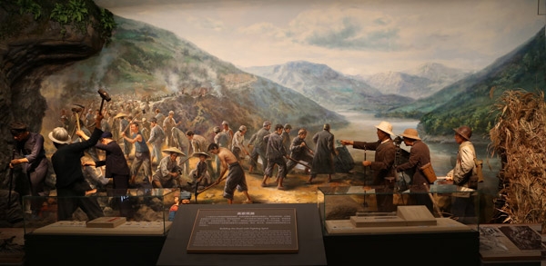 滇西抗戰(zhàn)紀(jì)念館以抗戰(zhàn)實(shí)物為主、兼顧圖片、文字及影像資料。展覽共包含抗戰(zhàn)后方、御敵前線、怒江對峙、絕地反攻、逐寇出境、祈愿和平等六個(gè)部分。