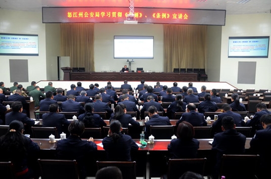 12月10日下午,怒江州公安局舉行《中國共產黨廉潔自律準則》和《中國共產黨紀律處分條例》專題宣講報告會,報告會邀請了州宣講團成員、中共怒江州委巡視聯絡辦公室主任為州公安局全局民警、邊防、消防官兵就學習貫徹《中國共產黨廉潔自律準則》和《中國共產黨紀律處分條例》進行專題宣講。