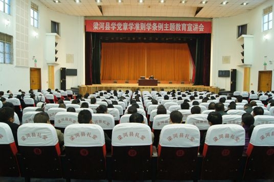 12月23日上午,梁河縣舉行學黨章學準則學條例主題宣講會,對全縣黨員干部學習貫徹《黨章》、《準則》和《條例》進行再動員、再宣講、再部署。縣四大機關領導班子成員,縣直和中央省州駐梁河各單位、鄉(鎮)副科及以上領導300余人參加宣講會。