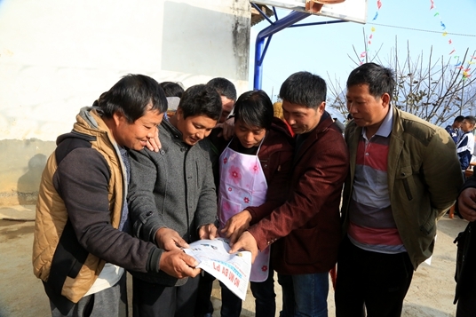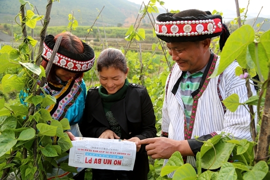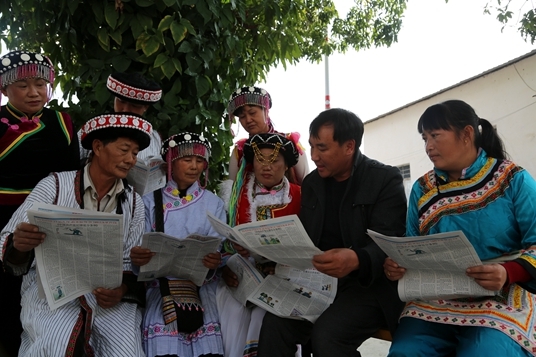 瀘水縣六庫(kù)鎮(zhèn)東方紅村的群眾爭(zhēng)相學(xué)習(xí)傈僳文版《準(zhǔn)則》和《條例》