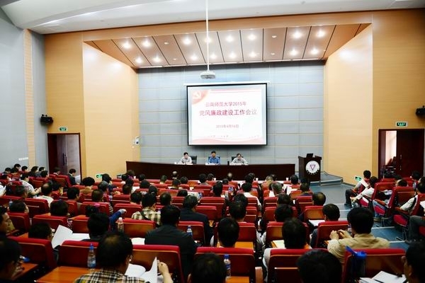4月16日下午,云南師范大學在呈貢主校區西邊中心報告廳召開了2015年度黨風廉政建設工作會議,會議由蔣永文校長主持,在家的校領導、副處以上實職干部、基層紀檢員共221人參加了會議。會議對2014年度的黨風廉政建設工作進行了全面總結并對2015年的工作重點進行了安排部署。校黨委書記葉燎原、校長蔣永文在會上作了重要講話
