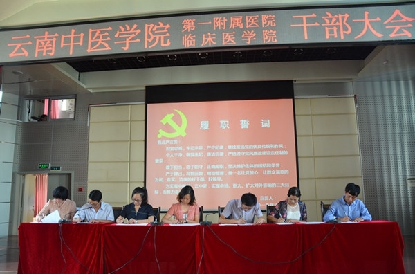 近日,云南中醫學院在第一附屬醫院(臨床醫學院)召開干部大會。會上,學校紀委書記楊中梁帶領新一輪聘任的7名處級干部集體廉政宣誓,組織履新干部簽訂了履職廉政承諾書。會后,楊中梁書記與第一附屬醫院(臨床醫學院)黨政班子開展了集體廉政談話。