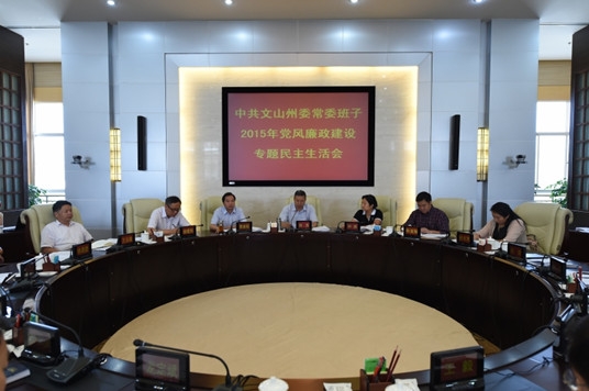 7月21日,文山州委常委班子舉行2015年黨風廉政建設專題民主生活會,認真學習中央和省委關于落實主體責任、加強黨風廉政建設等方面的規(guī)章制度,深刻剖析常委班子及其成員個人在履職盡責、帶頭遵規(guī)守紀方面存在的不足和差距,并研究制定整改措施。
