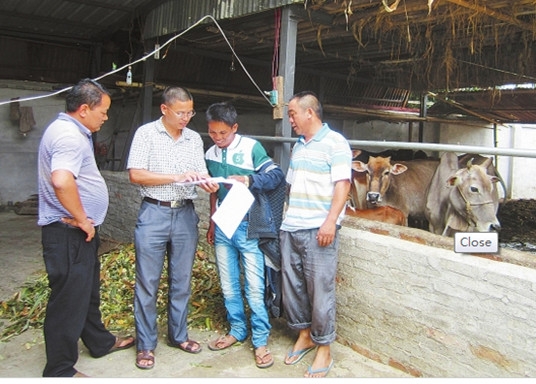 瑞麗市紀委、監察局督查組走訪農戶,詢問畜牧養殖資金兌現情況。