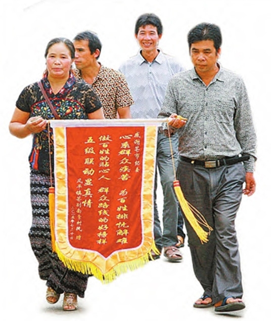 芒市風平鎮南景村10多名村民給芒市紀委、監察局送“五級聯動顯真情”的錦旗。