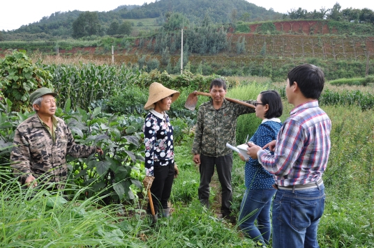 8月24日,云南省昆明市五華區(qū)紀(jì)委工作人員在西翥街道三多社區(qū)煙子哨村小組向村民了解土地征用相關(guān)問題。黃波 攝