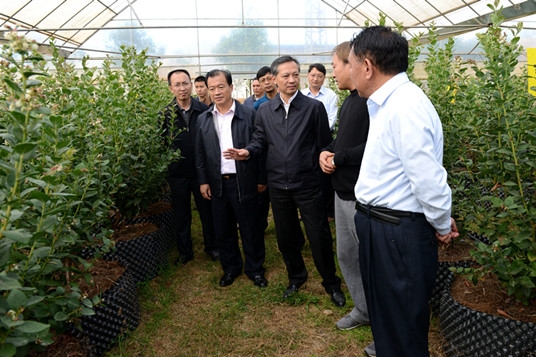 19日,張碩輔一行深入到掛鉤扶貧點楚雄市子午鎮挖銅村委會調研,實地視察挖銅村鄉村道路建設情況和子午鎮云南金沃科技有限公司藍莓產業發展情況,聽取了子午鎮和挖銅村委會扶貧攻堅工作匯報,對子午鎮、挖銅村基礎設施建設、產業發展、環境保護等提出明確要求。