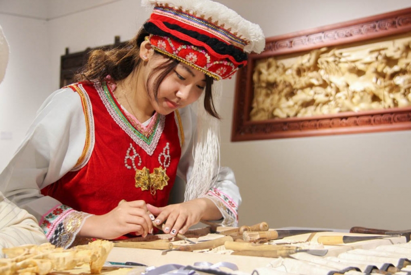 “雕得金龍騰空舞,刻出雄雞報五更,鑿出百鳥枝頭唱,鏤花引蜜蜂。”一首傳統白曲道出了劍川木雕的精湛技藝。劍川木雕已有五千多年的歷史,劍川被譽為“中國木雕藝術之鄉”,劍川木雕技藝也被列入國家級非物質文化遺產保護名錄。