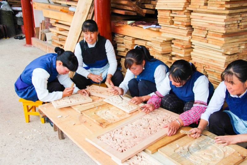 如今,劍川木雕已逐步向規模化、產業化方向經營,不僅有專業的木雕企業,有“獅河木雕村”、木雕作坊,還有木雕工藝大師和遍及全縣的木雕戶,木雕產品遠銷國內外。