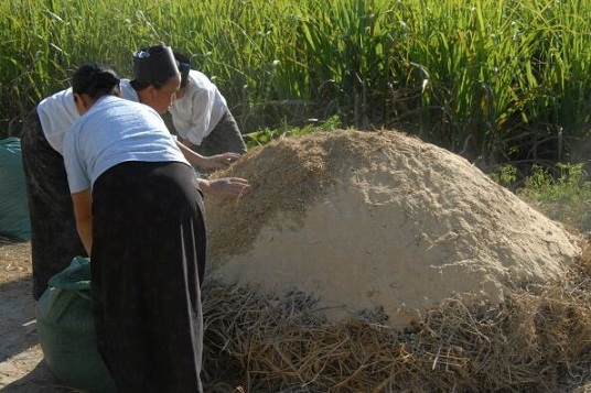 手工藝人們沒有專門的燒制場所,只能等到天氣尚好,在田邊、家邊的空地上,將土陶胚體堆砌起來,蓋以曬干的牛糞、麥麩、癟谷等農家“助燃劑”燒制整整一天,才可被世人所見。