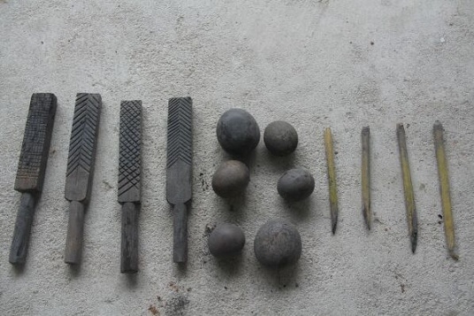 傣族土陶的制作工具也是與生活息息相關,隨處可見的石頭、木頭、樹枝在她們手里,就能變成化腐朽為神奇的“利器”