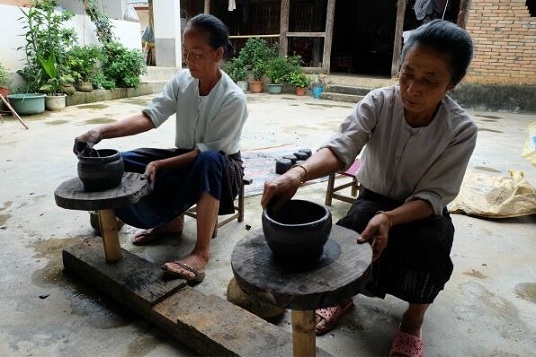 《傣族傳統制陶工藝》是國家級非物質文化遺產項目。因經過燒制后呈現出漂亮的淺赭紅色和米黃色,形成了獨特的色澤,古樸美觀。主要器型有罐、壺、鍋等,雖顯得粗拙,但卻具有厚重、自然的審美特質以及較強的藝術鑒賞價值和一定的開發利用價值。