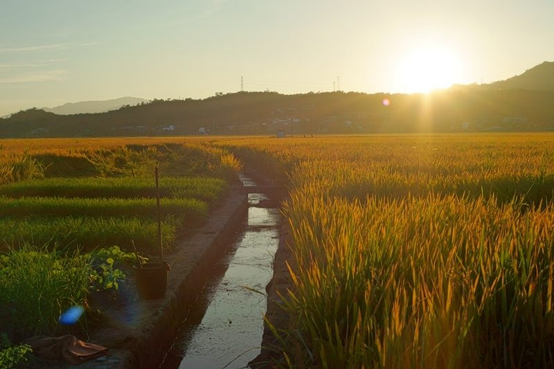 于是乘著夕陽,漫步在廣袤的田原上,無邊的稻子,穿上了秋日的濃妝,在晚霞里靚麗成鍍金的黃,把秋天豐腴的更加殷實。
