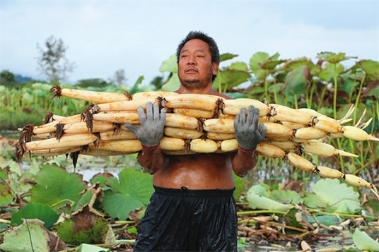 采藕的畫面沒有《舌尖上的中國》里那么多的詩情畫意,更多讓人感受到的是采藕人的艱辛