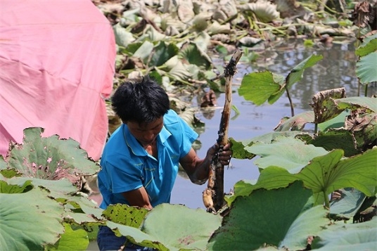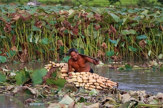 采藕是個(gè)苦活,是個(gè)技術(shù)活,講究技巧