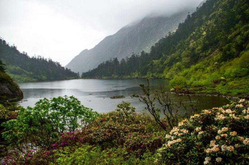 雪山、杜鵑、湖泊相互點(diǎn)綴、相互映襯,顯得那么神秘、妖嬈而又美麗