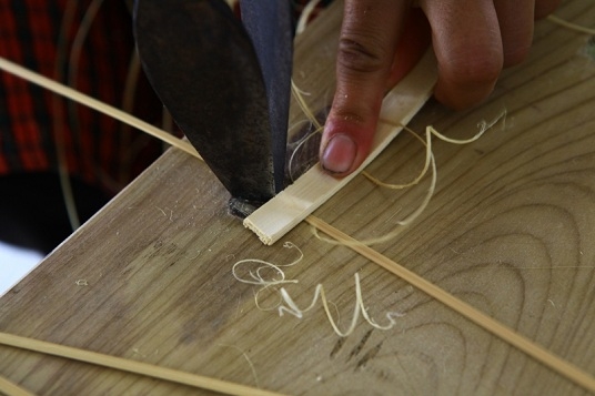 竹編工藝大體可分起底、編織、鎖口三道工序。在編織過程中,以經(jīng)緯編織法為主。在經(jīng)緯編織的基礎(chǔ)上,還可以穿插各種技法,例如疏編、插、穿、削、鎖、釘、扎、套等,使編出的圖案花色變化多樣,編制出喜字紋、波浪紋等花色。