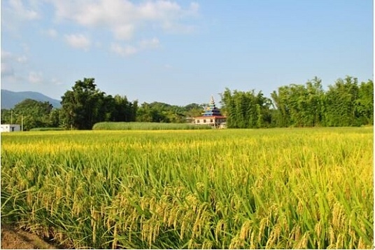 芒市遮放鎮(zhèn),我國現存3個野生稻谷原種地之一。這里地熱資源豐富、光照充足,晝夜溫差大,四周群山森林密布,壩邊路旁鳳尾竹成排成行,山嶺野生動植物、南藥品種繁多。早在古南方絲綢之路時代就有“芒市谷子、遮放米,象達姑娘、龍陵雨”的風韻之說。