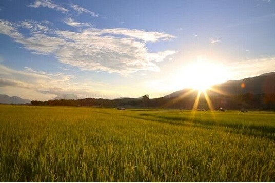 清晨的第一縷晨光叫醒了熟睡一夜的稻谷