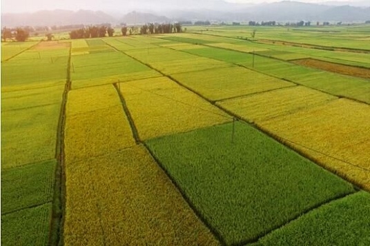 稻谷收獲季節(jié),江河水流形成的陣陣清風輕拂原野,蕩滌病邪蟲害,整個壩子散發(fā)出萬禾歡笑的清香