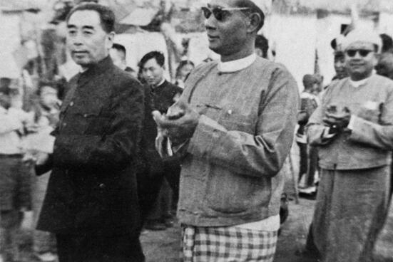 1956年12月15日,周恩來總理、賀龍副總理陪同緬甸總理吳巴瑞等貴賓從畹町九谷橋步行入境,到芒市參加中緬兩國邊民聯歡的盛會。