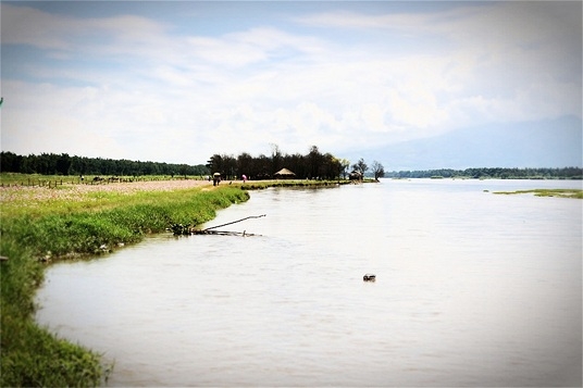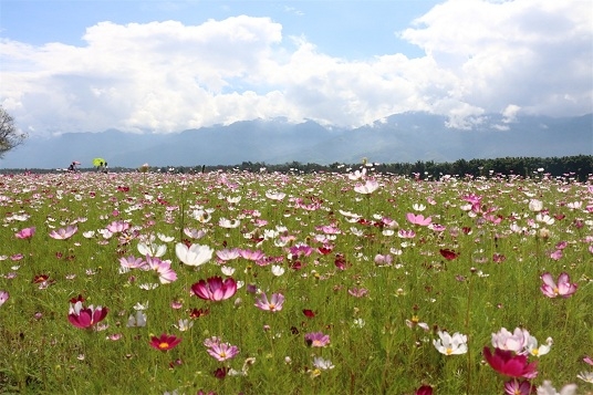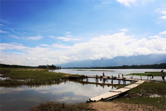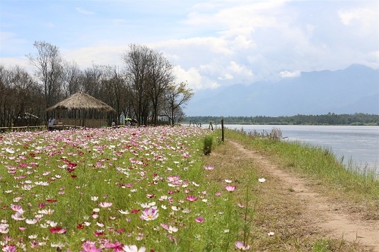 橋的那頭是盛開的花。太平芒海,一半是水,一半是花。花開在左,水流在右。