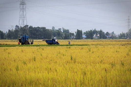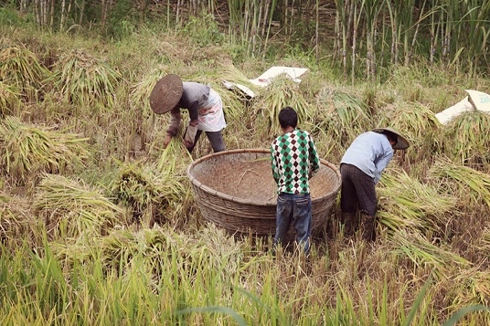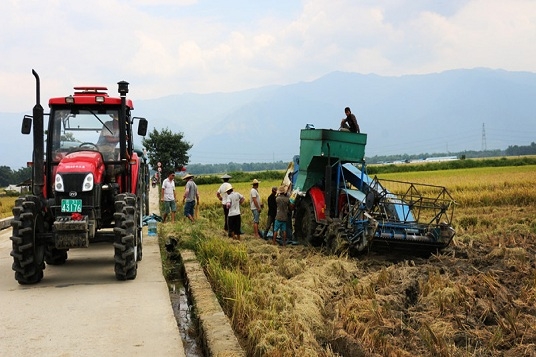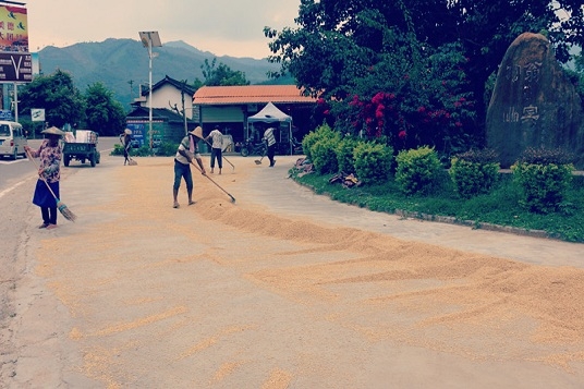 “轟轟轟”是聒噪卻不擾人的收割聲。啪、啪一起一落稻穗和谷簍的撞擊是一粒粟和萬顆子的故事,刷、刷、刷,一翻一曬,是豐收的影子。