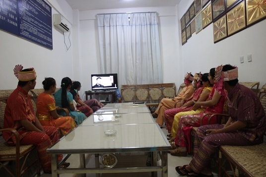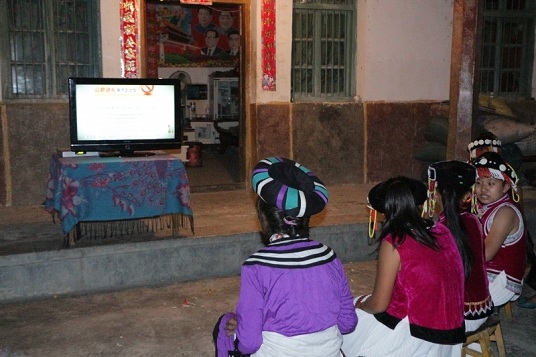昌寧縣灣甸鄉(xiāng)上甸社區(qū)會議室集中觀看