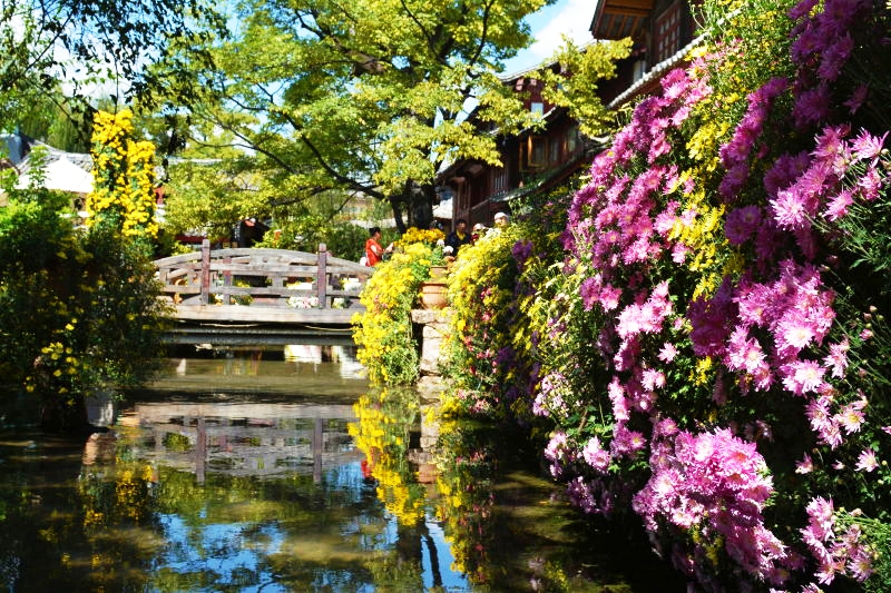 古城的橋小到一塊長木板擱兩端就連接起兩戶人家的過戶橋,大到長10余米橫跨河面的大石橋,無一不寧靜祥和古意盎然,以其寬大包容了世界,它們默默無聞波瀾不驚,承載著時光與歷史,水與橋完美組合,構成了麗江古城獨特的風景。