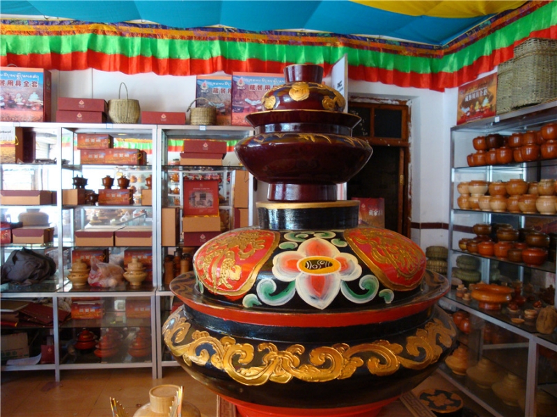 奔子欄手工制作的民族工藝品木碗、糌粑盒等因做工精美、結實而文明全藏區。