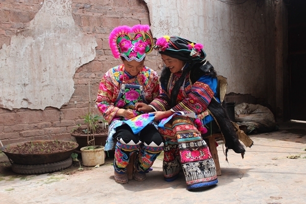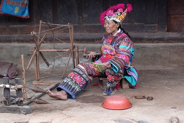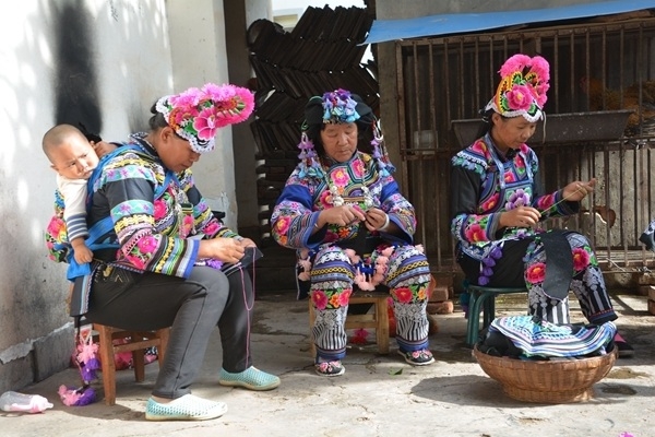 過去每個直苴彝族家庭成員的衣物用布都要由婦女紡織、縫制而成。按當地習慣,直苴彝族女性,一般是六七歲左右,用當地的話說是“只要會拿針”就跟著長輩學著織麻、紡線、織布、繡花。