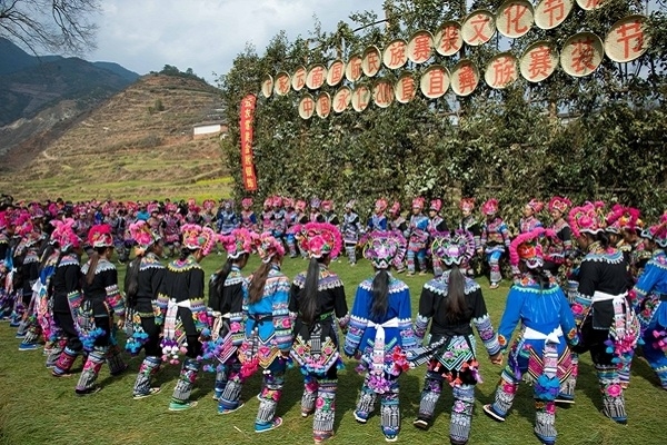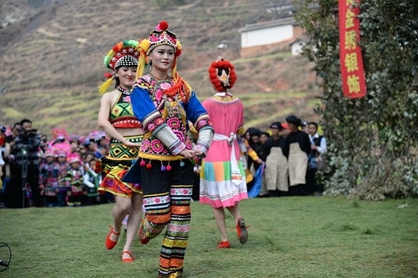 每年正月十五是直苴的“賽裝節”,這一天彝族姑娘們會穿上自己縫制的、五顏六色的節日盛裝參加盛會。而中老年彝家婦女及小孩,也會以不同的性別年齡,不同形式打扮,穿著最美的節日盛裝展現在人們的面前。姑娘們既是服裝的設計者,也是制作者,更是表演中的“時裝模特”。
