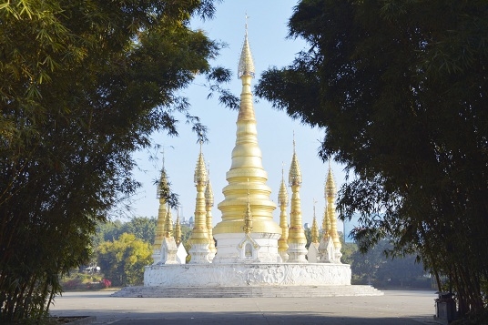 公園的另一角還有一個豎有傣族金塔的小廣場,清澈的天空、閃亮的塔身,一種虔誠祥和的感覺油然而生。