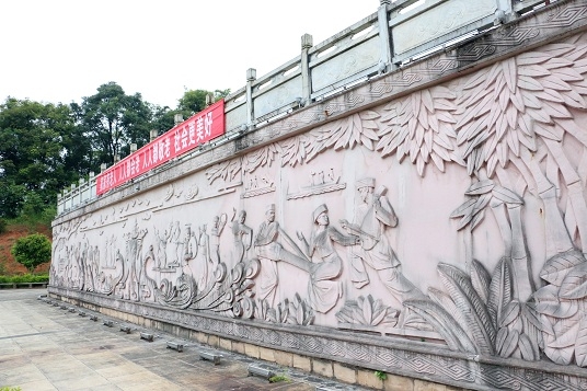 紀念碑的五面墻壁上是德宏州五種少數民族歡歌載舞的浮雕,每一面刻畫一種少數民族,預示民族大團結、共繁榮。