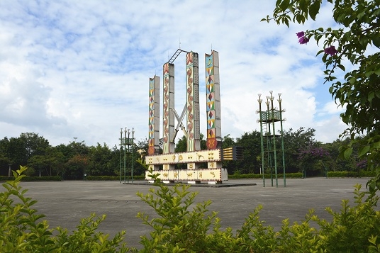 公園的另一端是民族英雄早樂東紀念廣場,緊挨路邊,對面是民族學校,經常可以看到莘莘學子手捧書本專心致志的畫面。