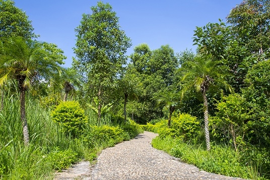 蜿蜒崎嶇的小路,茂盛的灌木叢,郁郁蔥蔥的森林。