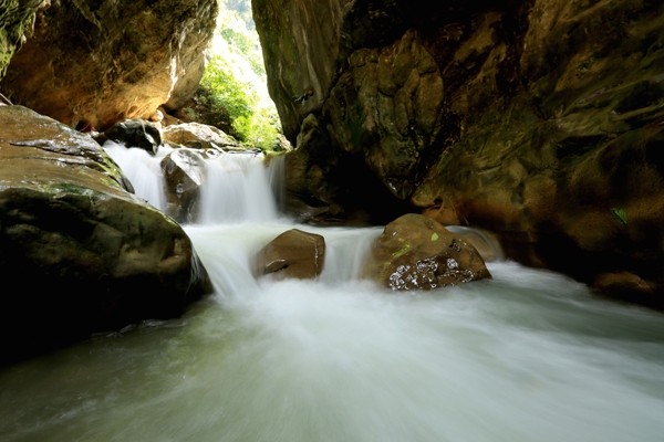 官寨溝上游有千樹花開的美景,中段有萬蝶飛舞的奇觀,下段有群瀑飛泄的景致,谷內壁立千仞,曲徑通幽,怪石嶙峋,藤樹相纏,奇峰、幽谷、老樹、頑石,每一個元素、每一處風景似乎都在有意無意地演繹著唐詩宋詞,或壯美、或婉約……