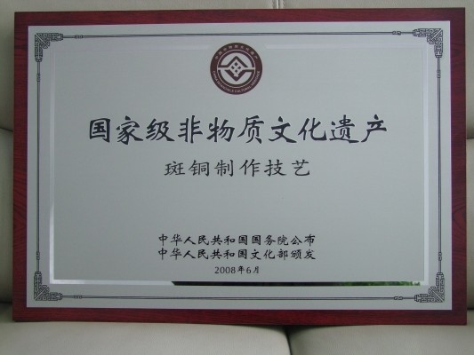 國家級非物質文化遺產認證牌