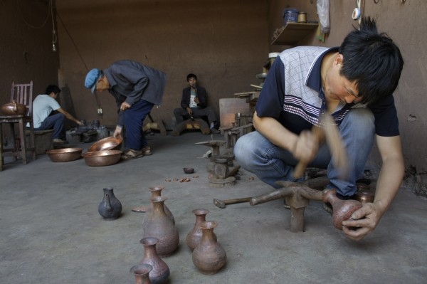看著這些巧奪天工的手工藝品,穿過時光的隧道,仿佛看到這里曾經聚集著一批能工巧匠,用銅器敲打的鏗鏘聲喚醒這座沉睡的小城。