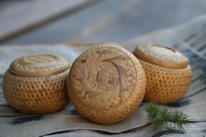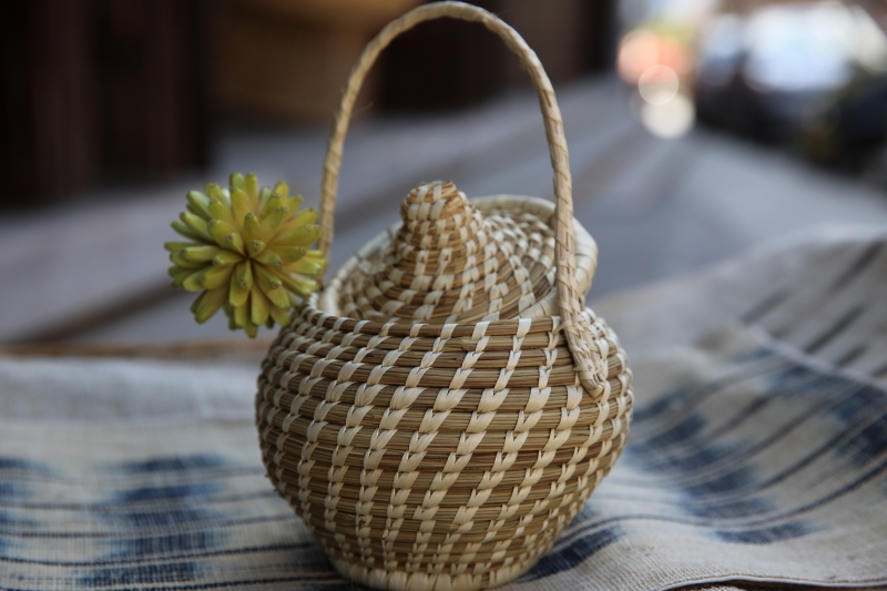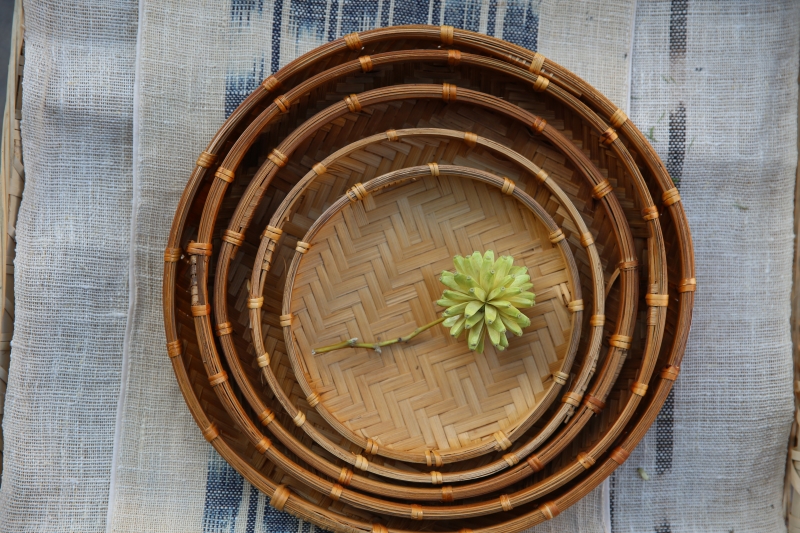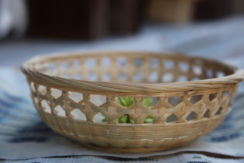 農閑時節(jié),勤勞的小城人也不閑著,找來收割余下的麥杠,削幾枝竹篾,編起了各式各樣的收納籮筐。
