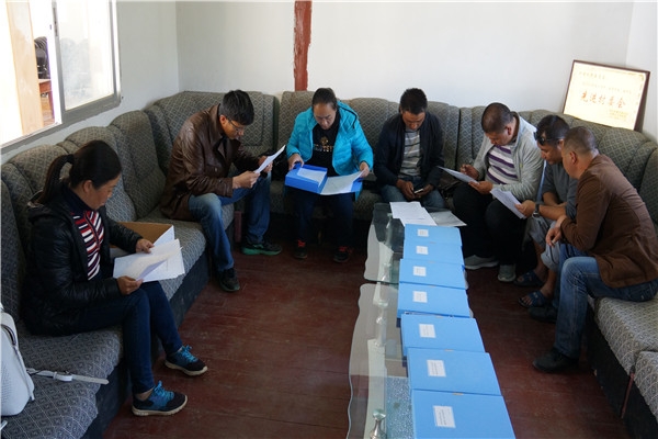 駐村工作隊員與村三委成員核對基礎(chǔ)資料